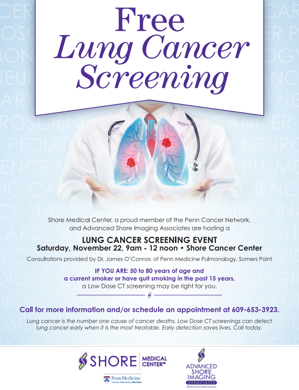 Shore Medical Center is hosting a Free Lung Cancer Screening Event on Saturday, November 22nd!